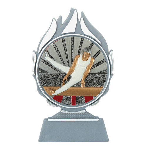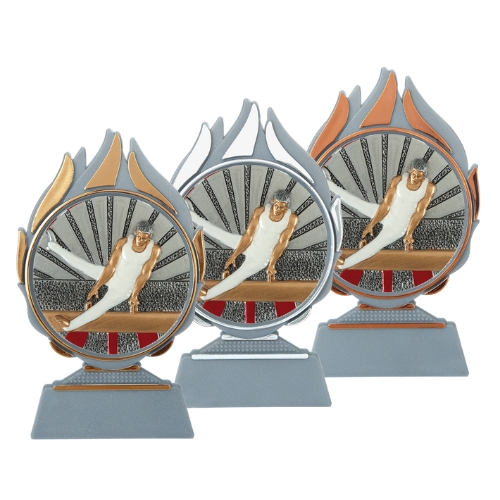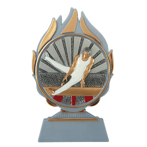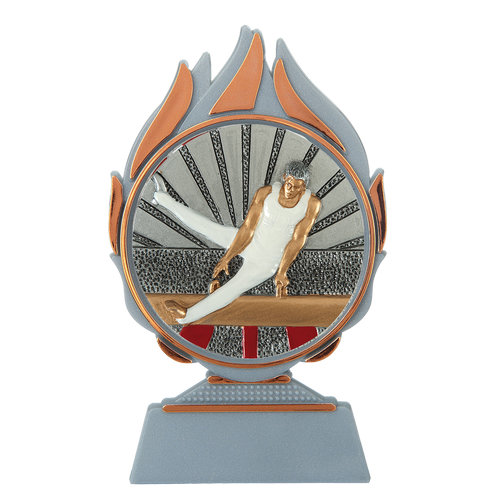 Centraal op de Budget prijs turnen mannen bevindt zich een resin embleem met een diameter van 70 millimeter. Dit embleem toont een turnmotief dat direct herkenbaar is als herenturnen. Door het gebruik van resin zijn de details scherp en blijft het embleem langdurig mooi. Het embleem vormt het visuele middelpunt van de prijs en zorgt ervoor dat in één oogopslag duidelijk is voor welke sport de prijs bedoeld is.