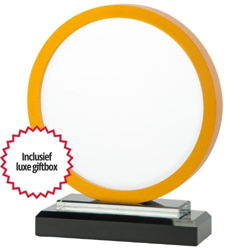 Wil jij winnaars, kampioenen of jubilarissen belonen voor een bijzondere prestatie? Laat jouw persoonlijke ontwerp graveren op deze luxe glas award en ontvang deze award in een luxe giftbox. Deze glas award is ook verkrijgbaar met zilveren rand of bronzen rand voor de top-3 van jouw evenement.