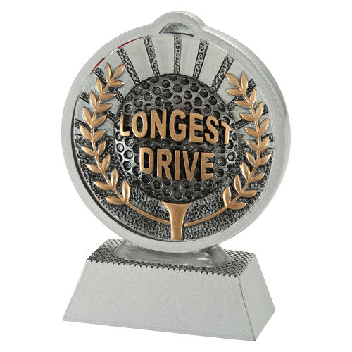 Een golfprijs voor de krachtigste slag van de dag. De Winnaar prijs golf ‘longest drive’ is een resin sportprijs van 110 mm met een rond embleem en een persoonlijk tekstplaatje.