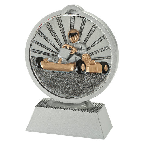 Een dynamische kartprijs voor races, kampioenschappen en circuitdagen. Deze resin sportprijs toont een coureur in actie en biedt ruimte voor een persoonlijke tekst, zoals naam, circuit of eindpositie, die zichtbaar op de prijs wordt geplaatst.